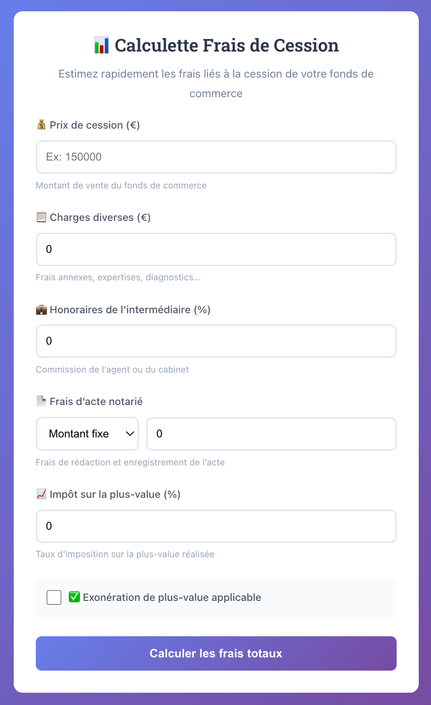 Comment fonctionne la calculette de frais de cession de fonds de commerce ?